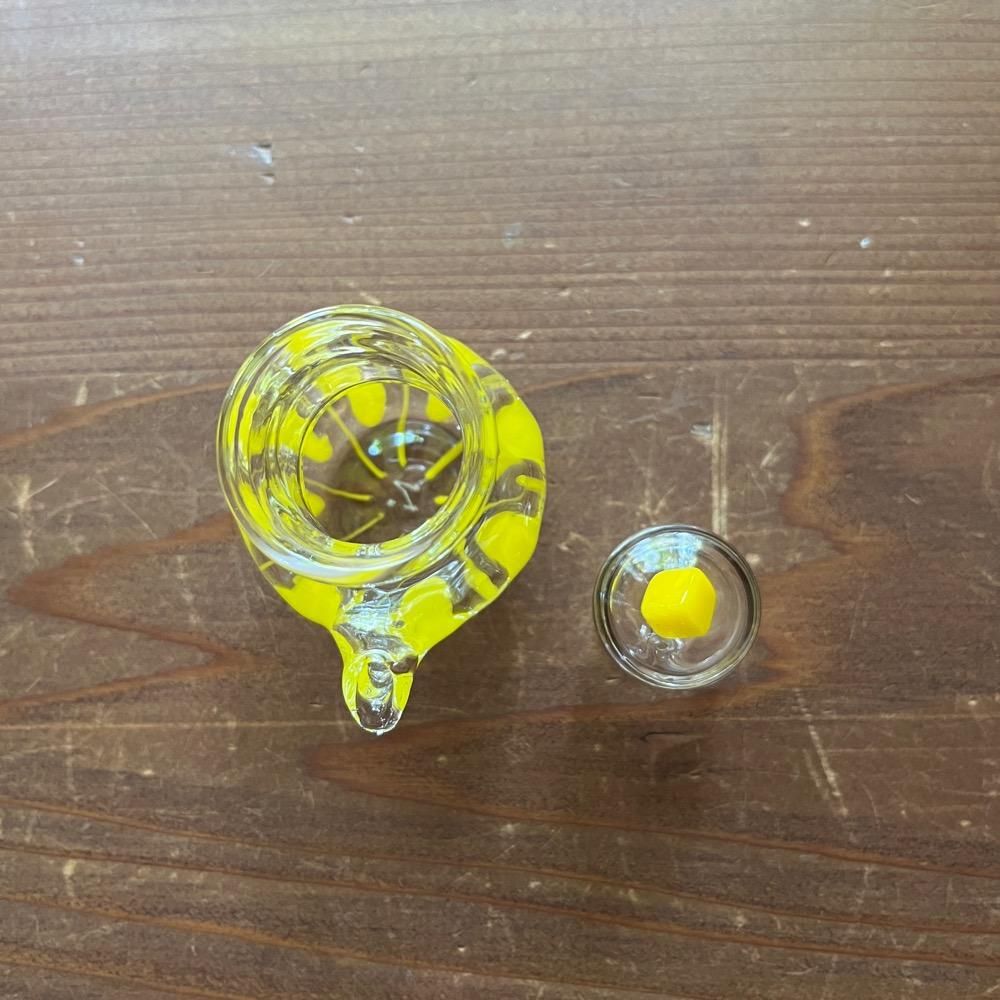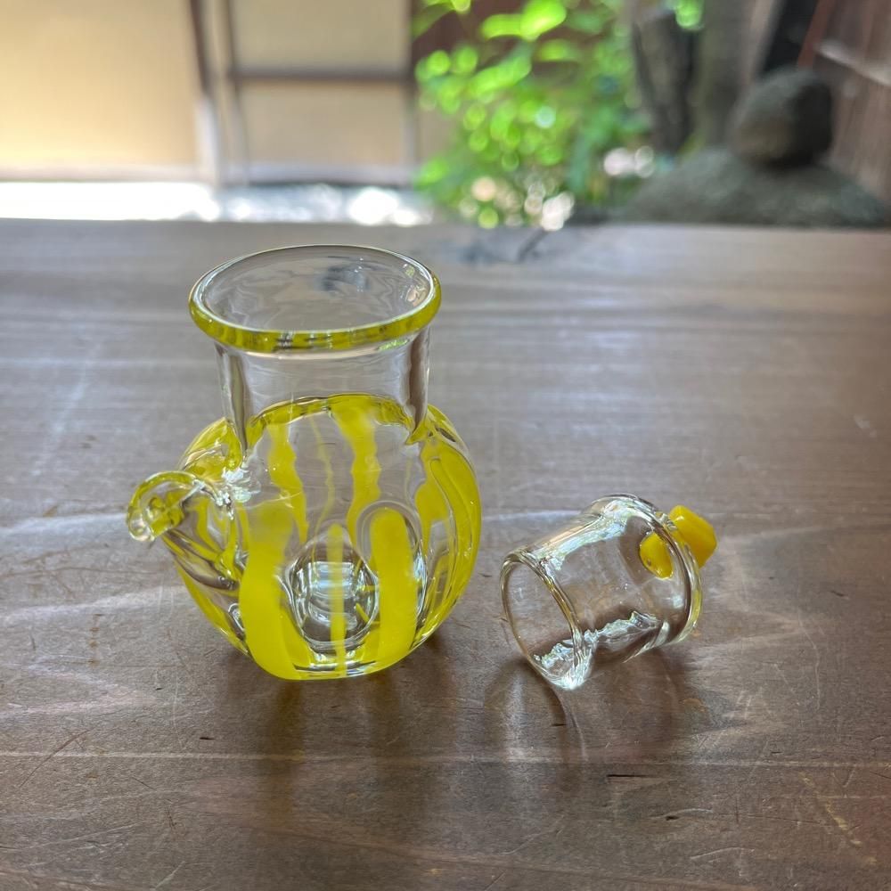 ガラス作家・渡邊徳明さんの人気の定番「切れ良し醤油差し」。
