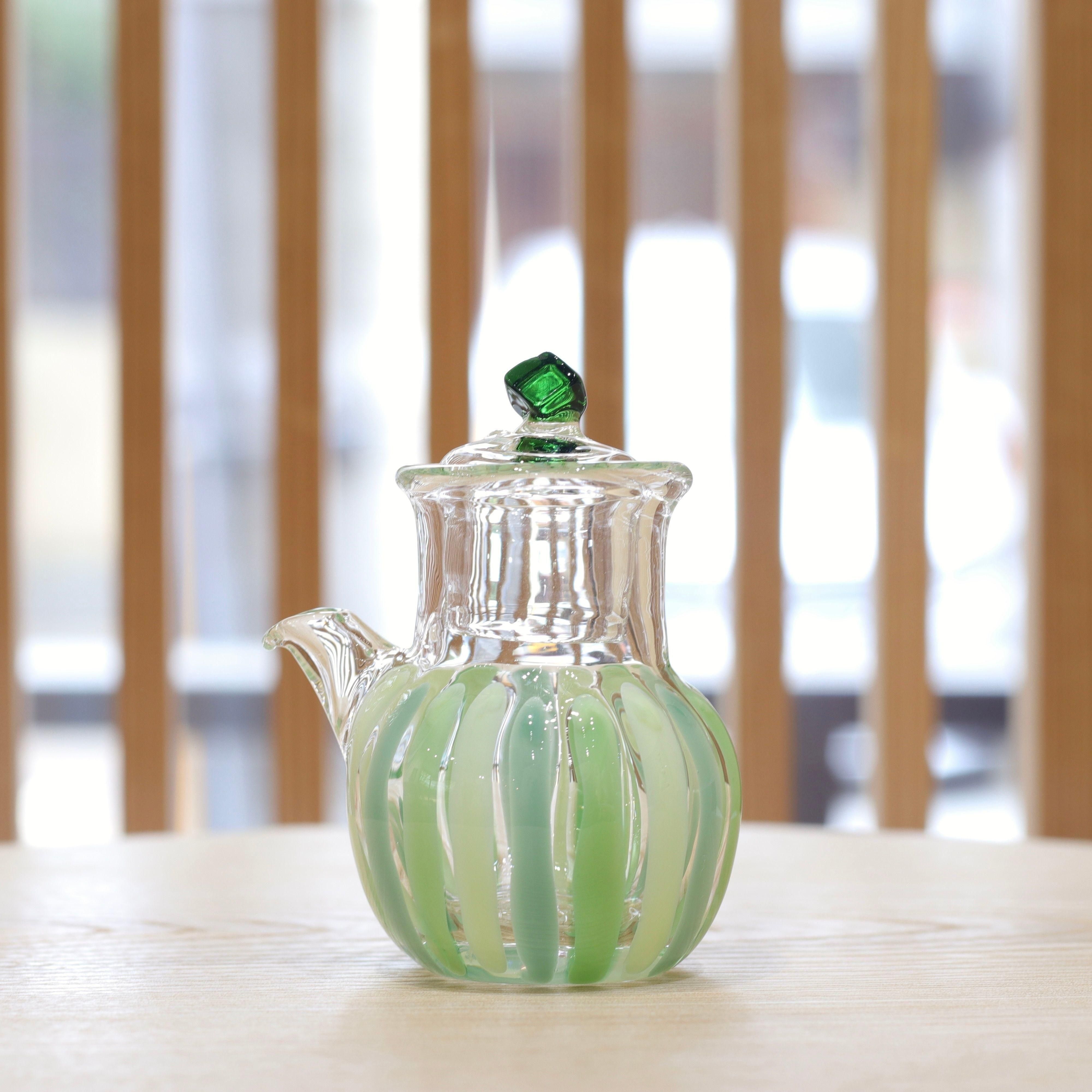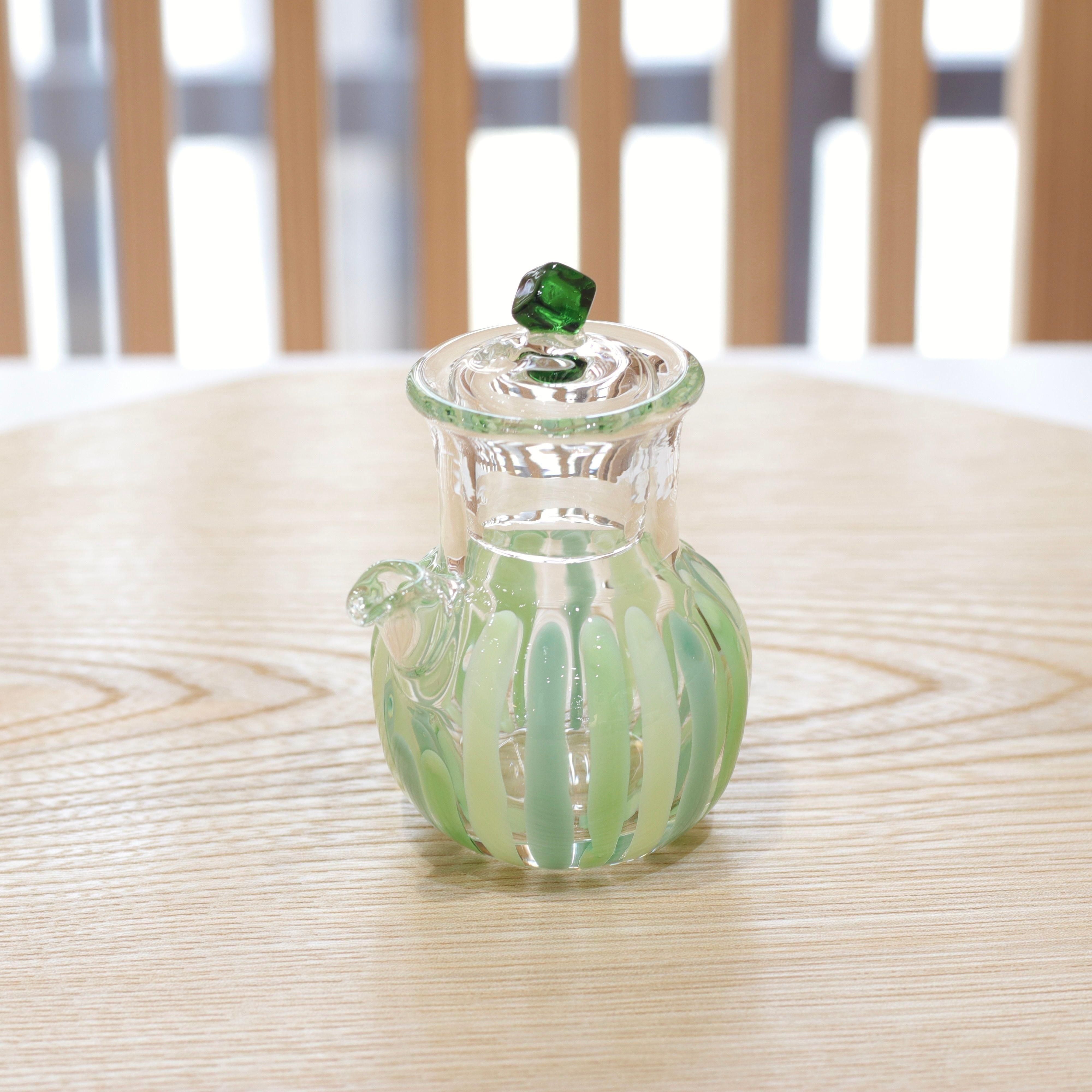 ガラス作家・渡邊徳明さんの人気の定番「切れ良し醤油差し」。