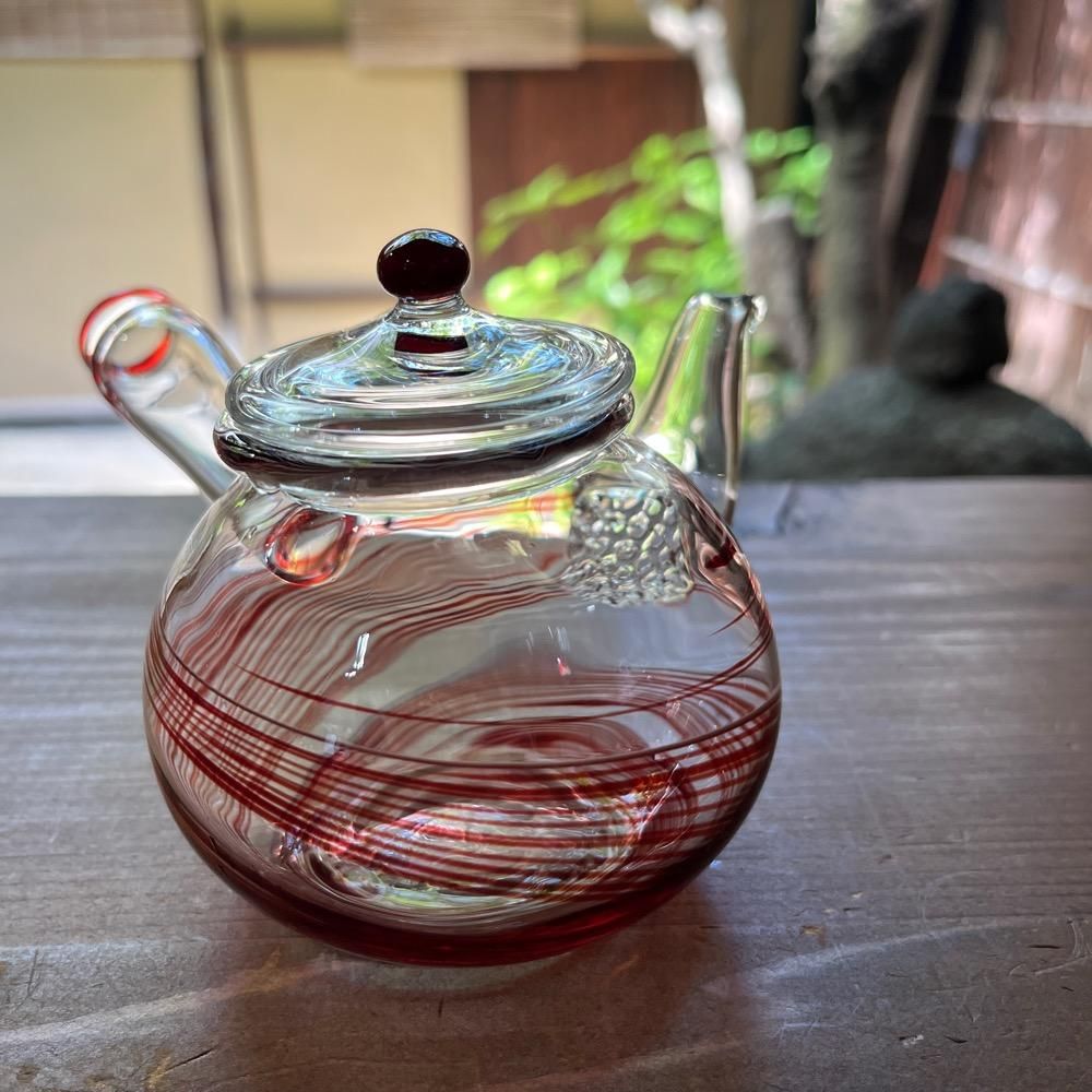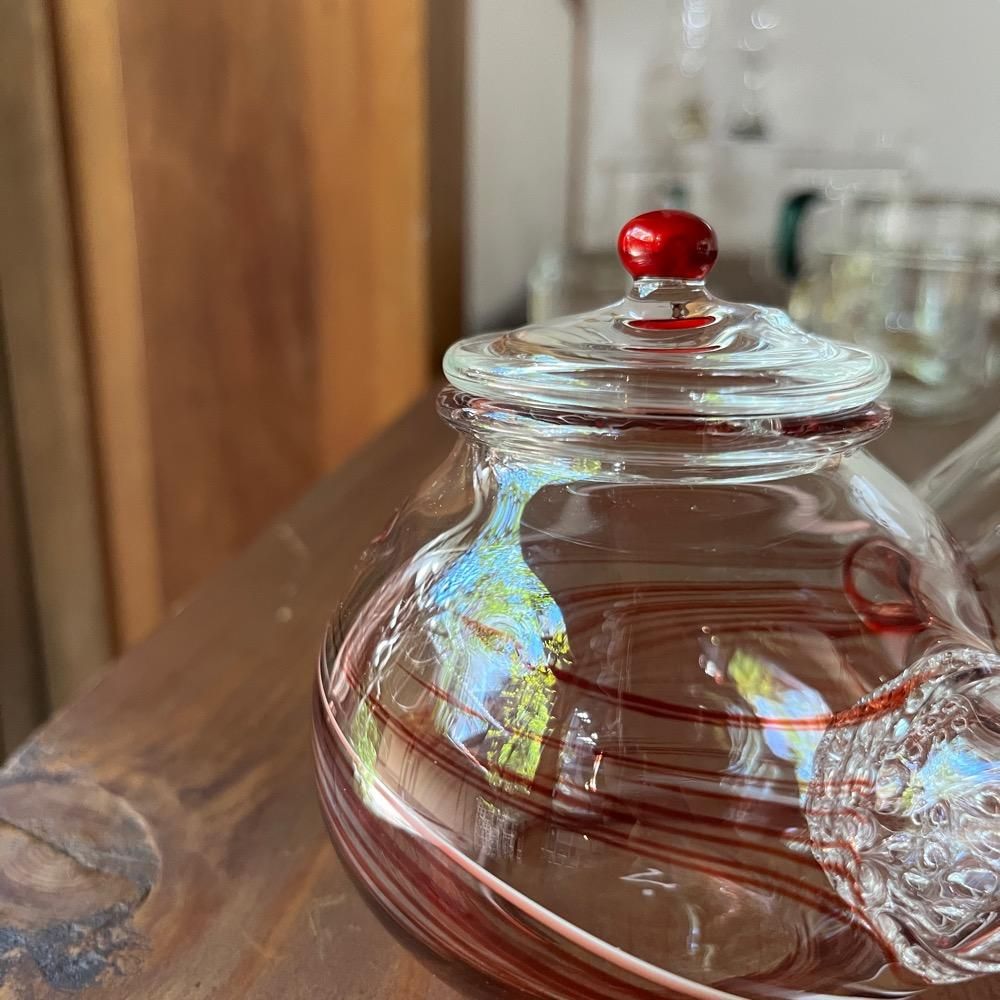ガラス作家・渡邊徳明さんの渦柄のポット。