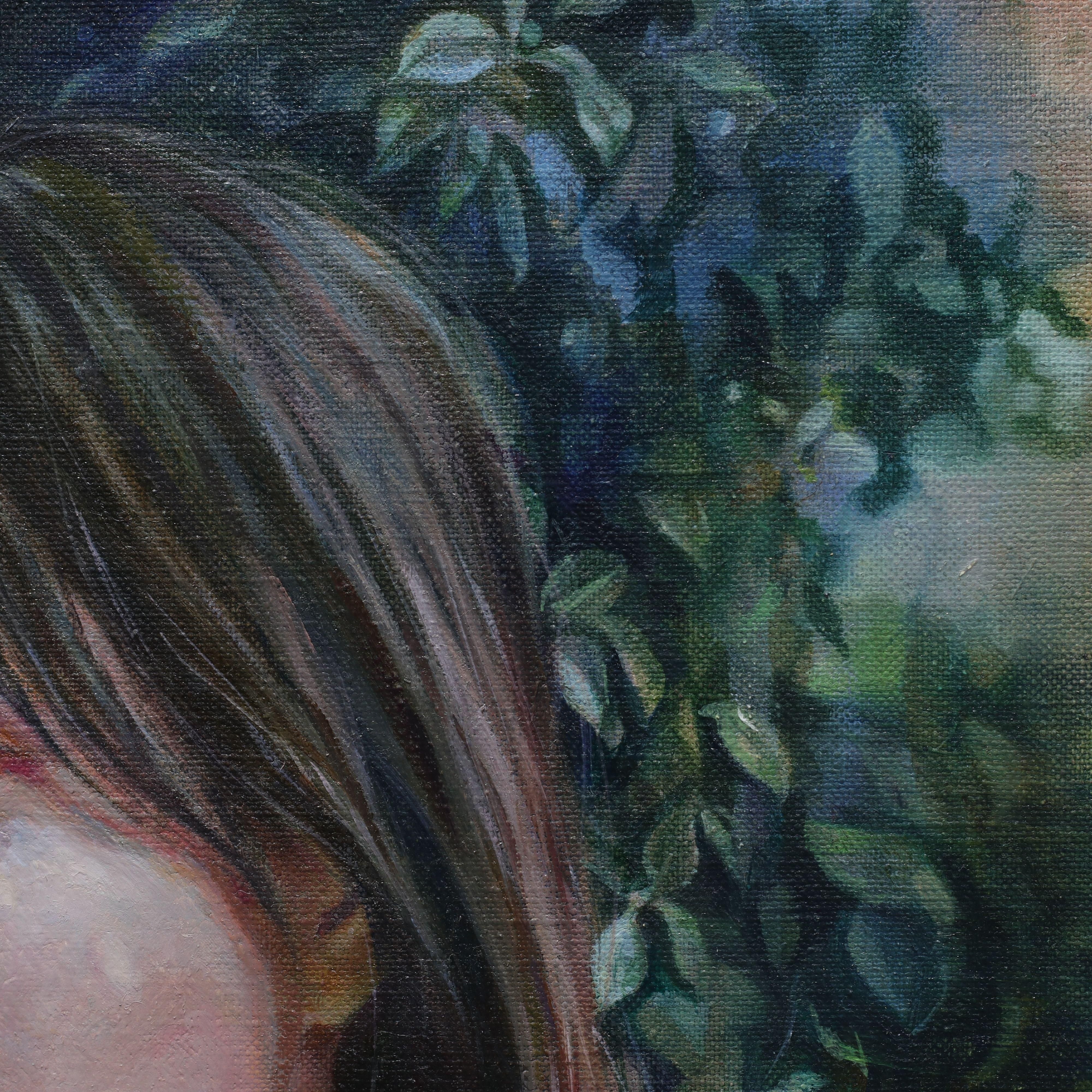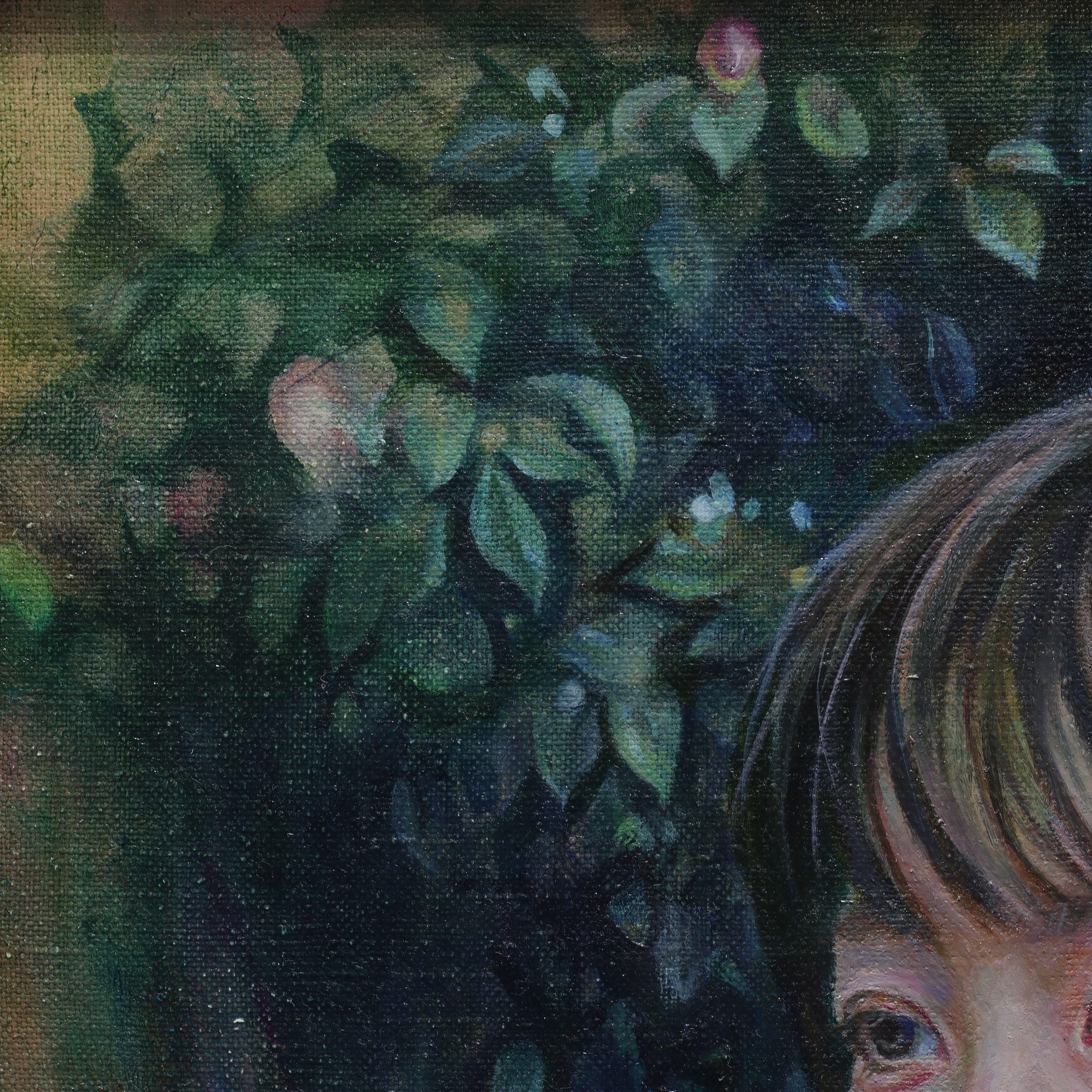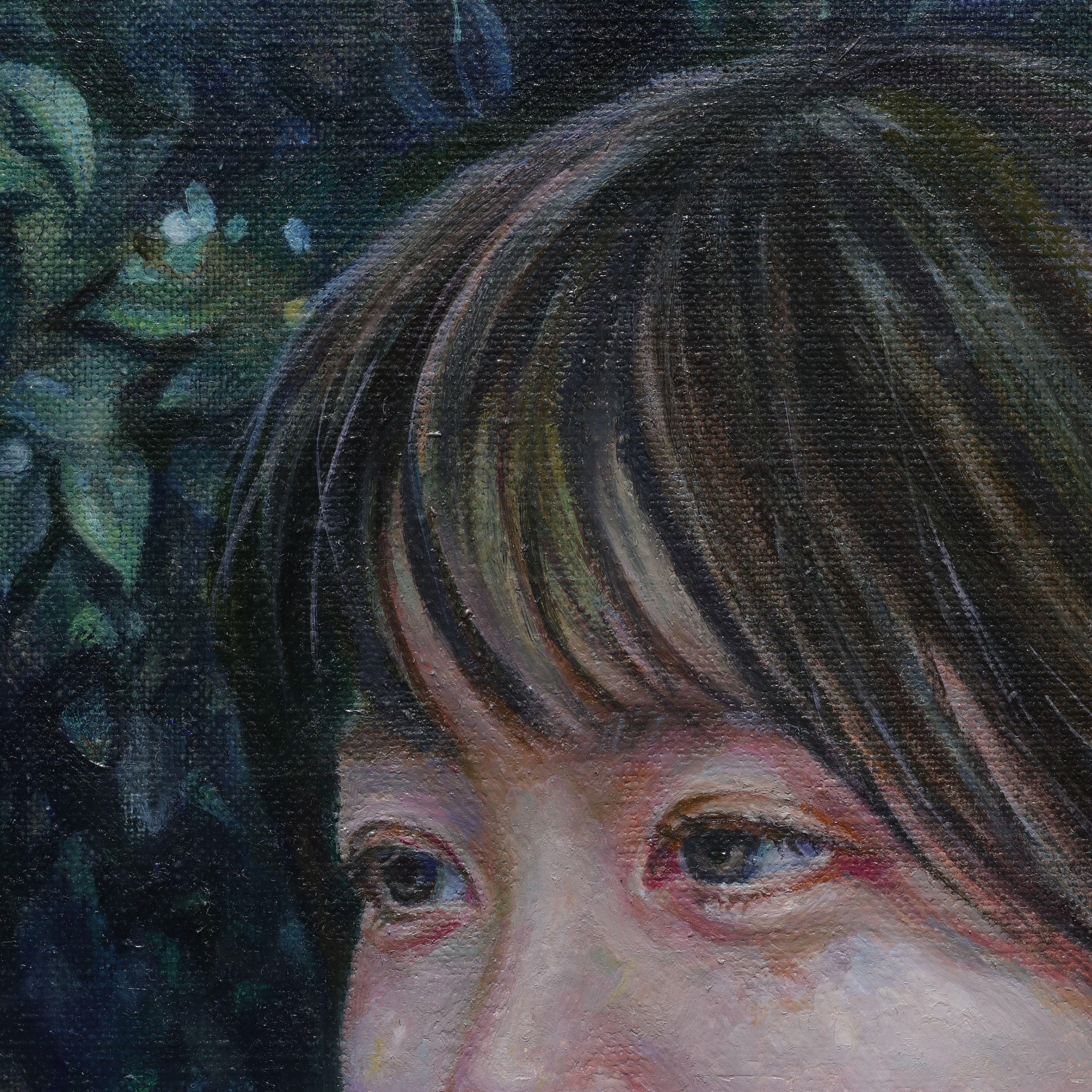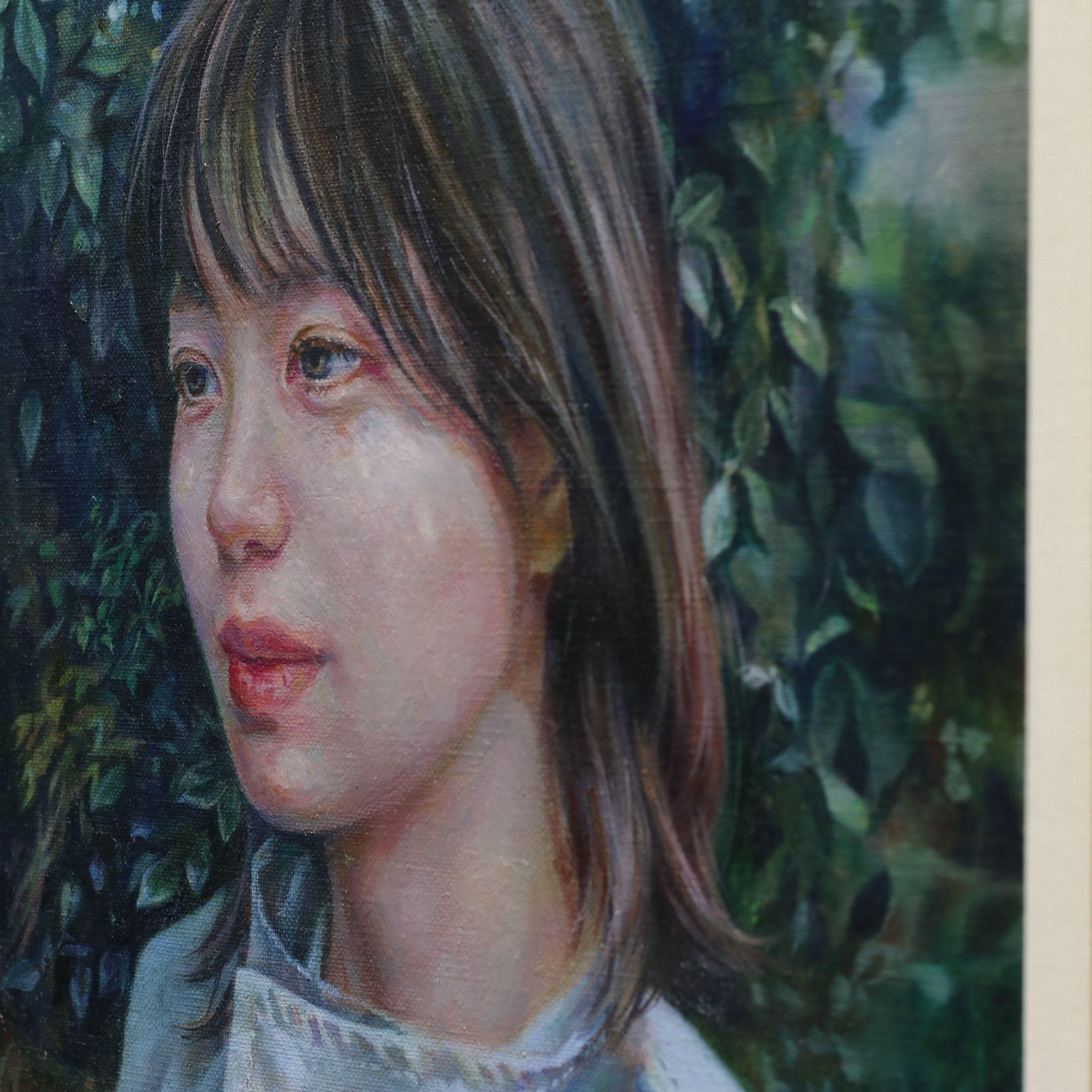 本作では、森の中に佇む人物を通して、人が自分だけの世界に沈むときの静かで幽玄なまなざしを表現したいと思いました。」