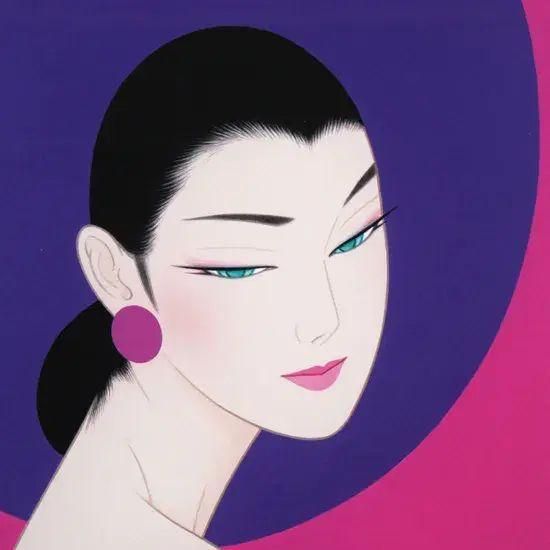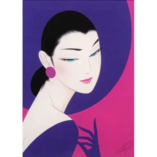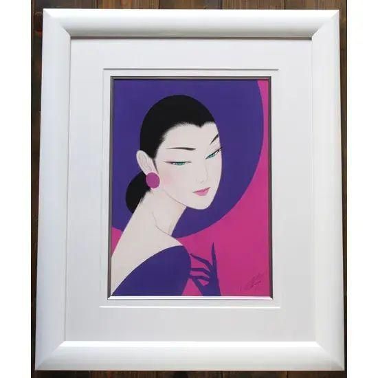 女性像の高貴さと妖艶さ、その両面を表現するのに最もふさわしい色『優美なる紫』をテーマにして描かれ、命名された作品です。手軽に飾れる大きさで、価格もお手頃となっております。