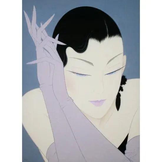 2017年秋に発表された最新作版画です。映画「カサブランカ」の主題曲「As time goes by」へのオマージュとして生まれた作品です。この作品を見ると鶴田さんが時に日本版エルテと評されることが納得できます。エレガントでシックな大人の女性像をグラフィカルに描いた秀作です。