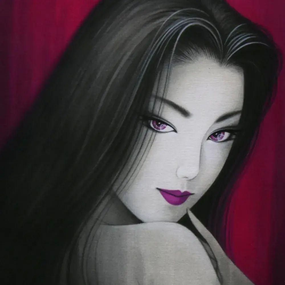 墨絵のようなクールな表現の中に輝く、妖艶なルビーの瞳と唇がことさら強烈なインパクトを与える秀作です。