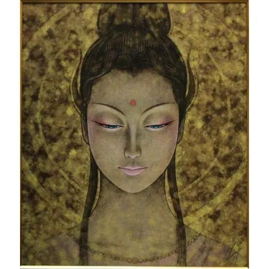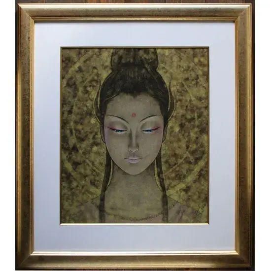 鶴田さんが近年取組む仏画シリーズの第一弾。琳派に良く見られるたらし込み技法にも挑戦した意欲作です。(※作品自体には金は使われておりませんので、ご注意下さい。)