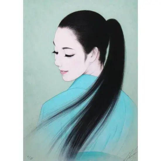 新緑の春、爽やかな春風に黒髪がたなびいています。
