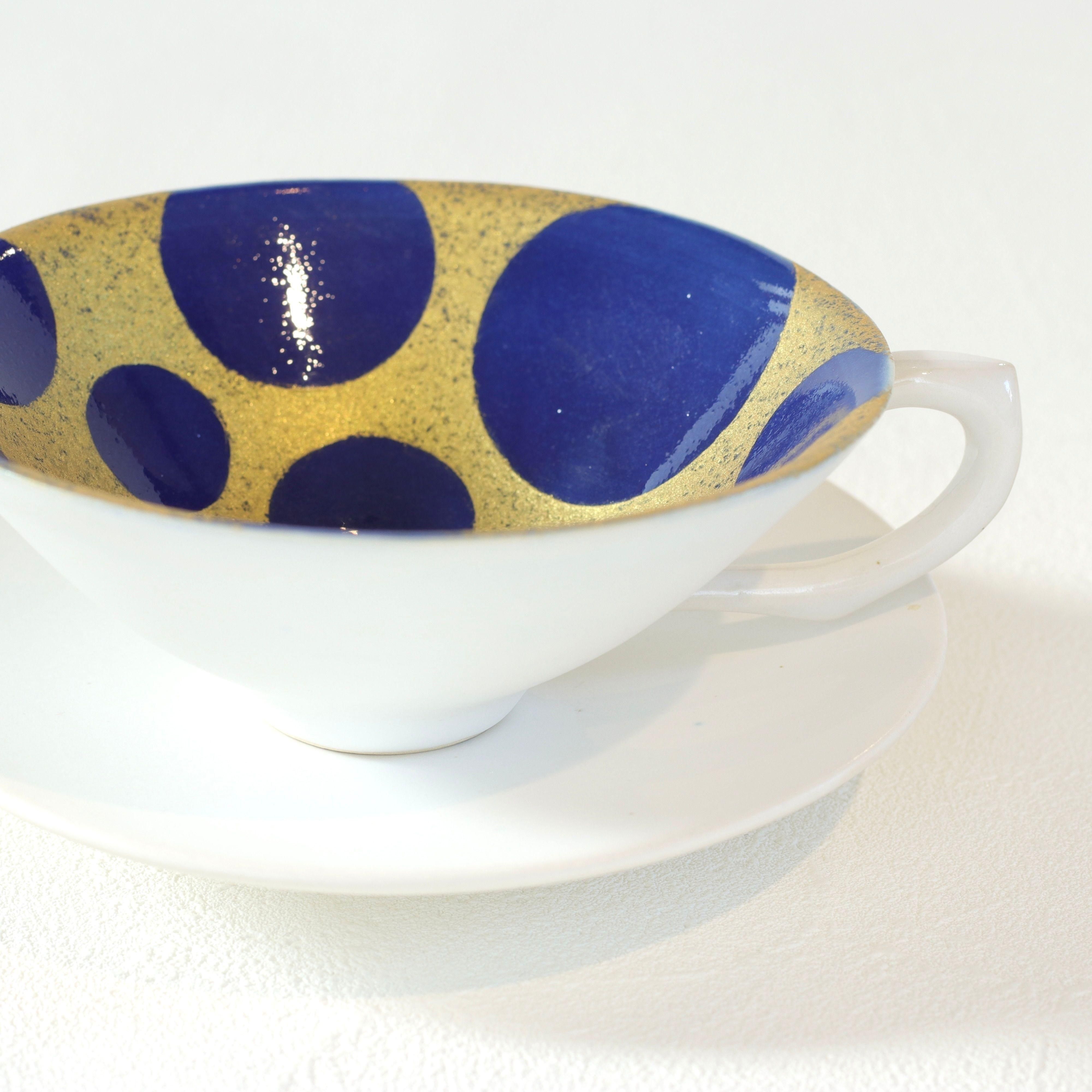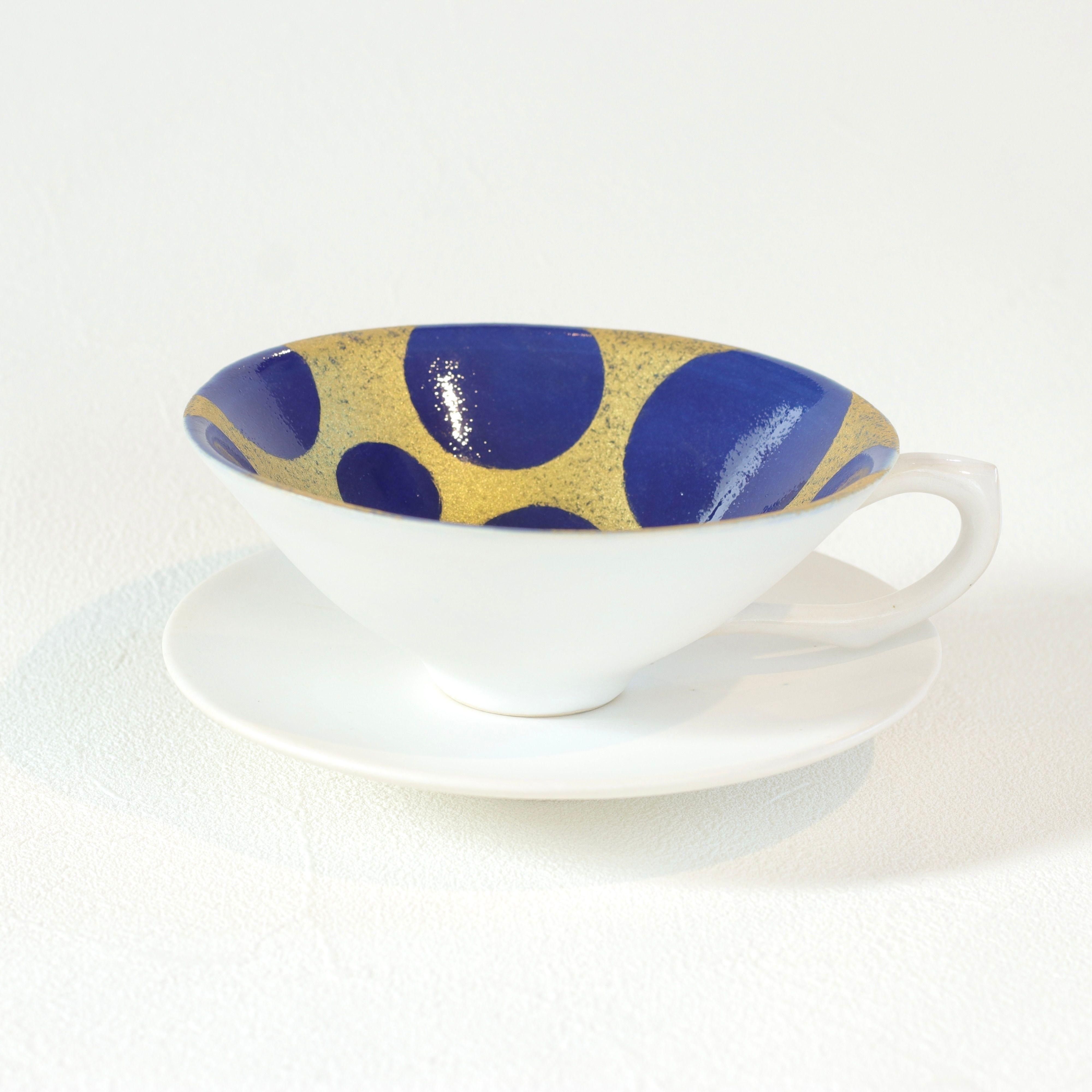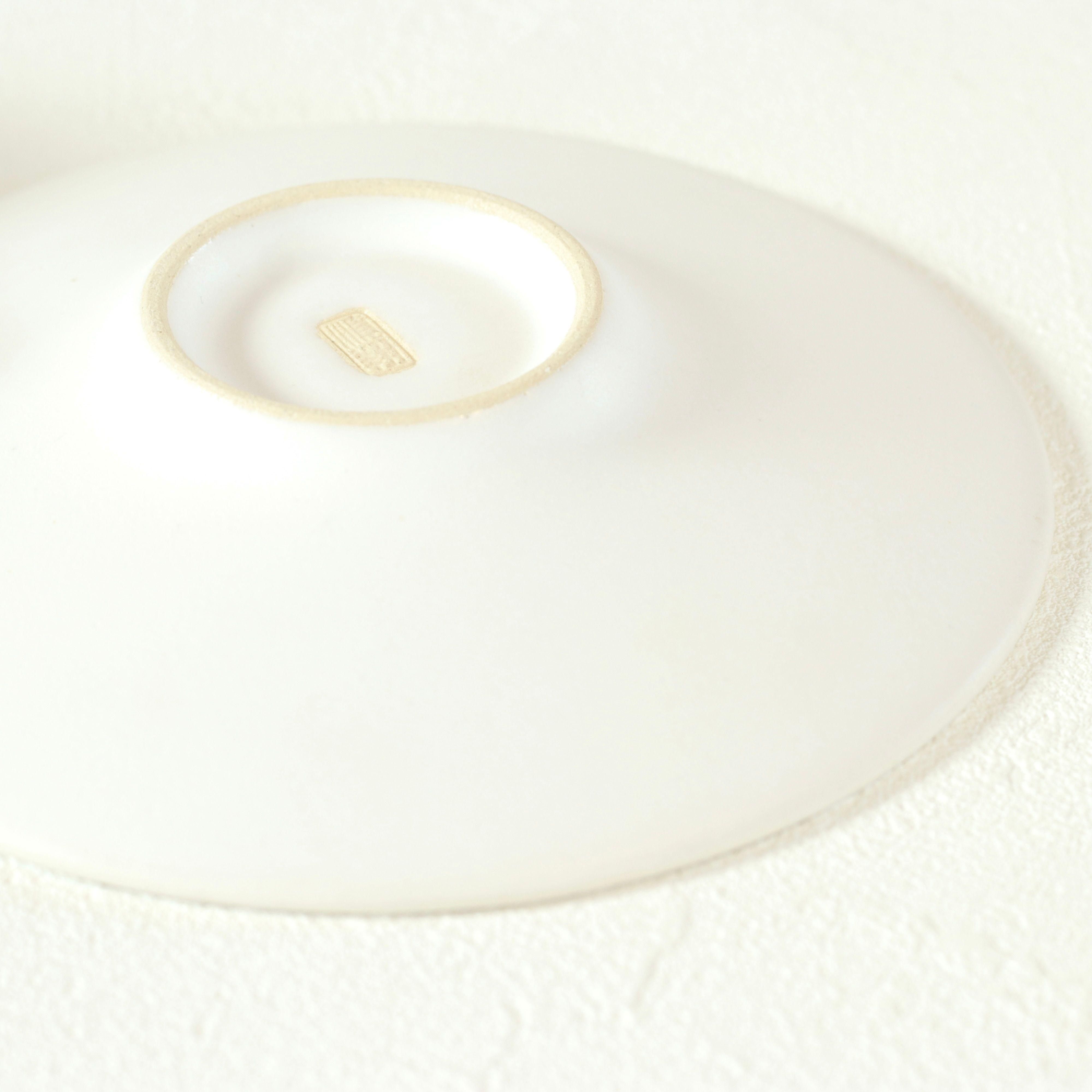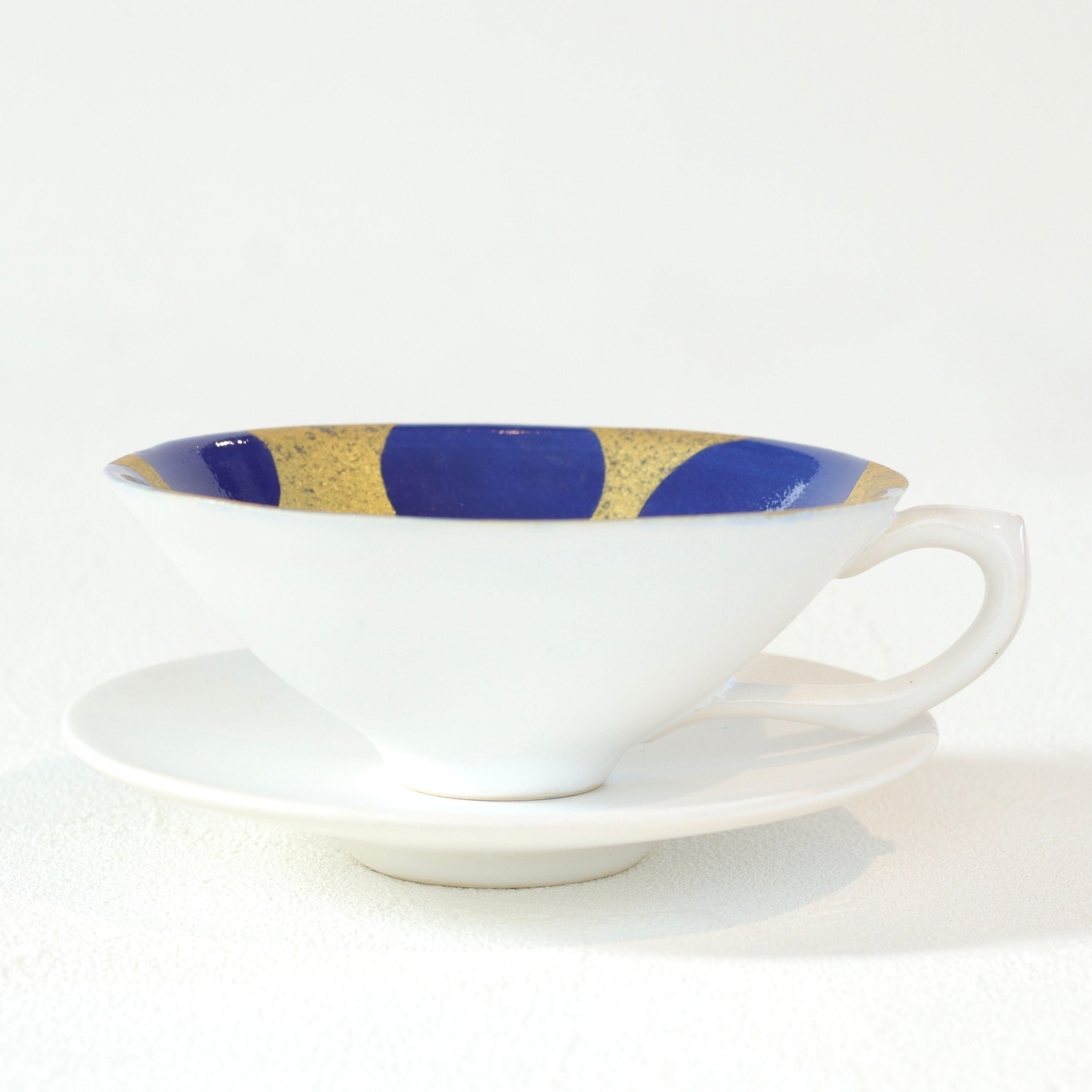 持った時の適度な重量感と肌触り、そして薄く作られた口元の感触も大きな魅力。そして取手の形のデザインも秀逸です。また、ソーサーは高台受けをあえて作っておりませんので、単体で小皿としてもお使いいただけます。
