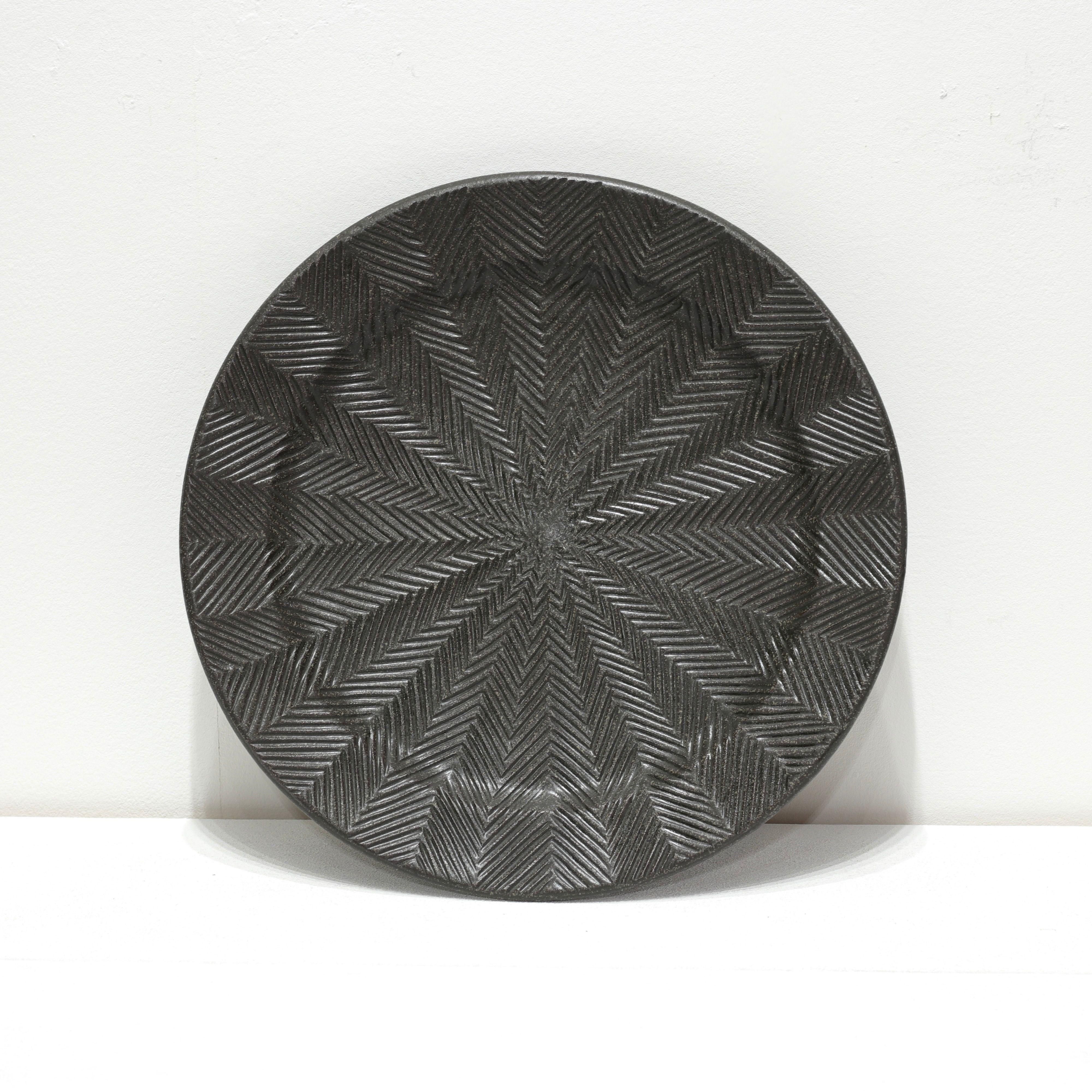 はしもとさちえ 8寸リム皿 ヘリンボーンkuro